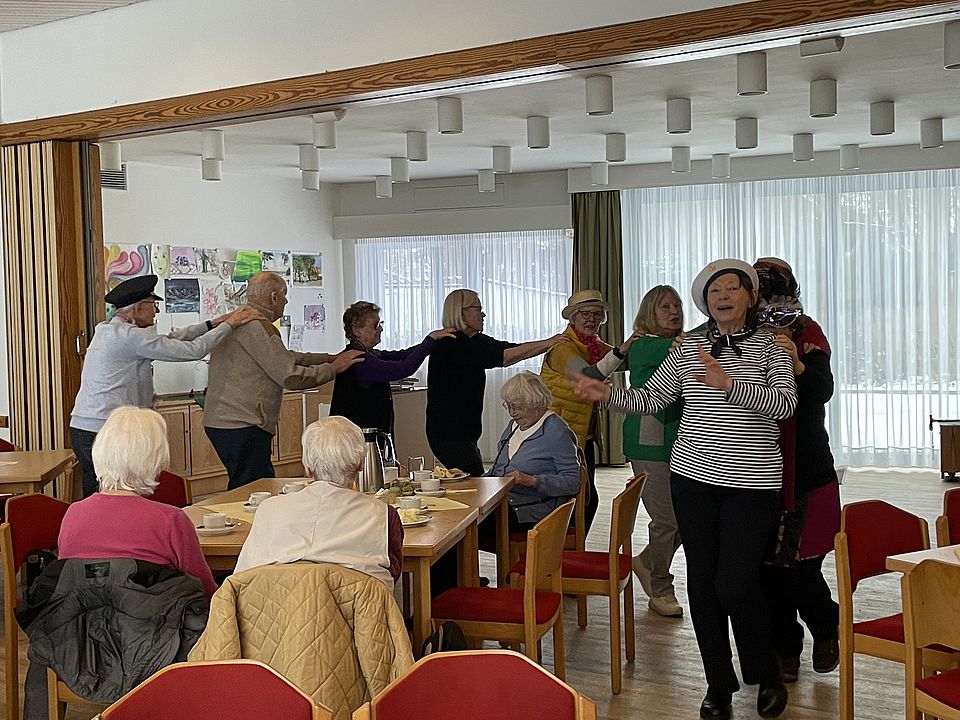 Claudia Bakan führte durch das Programm und erhielt diesmal Unterstützung bei Moderation und der beliebten Polonäse von Kerstin Malenke aus dem Kreis der Organisierten des Montags-Seminars. Musikalisch und mit humoristischen Beiträgen umrahmt wurde der Nachmittag von Manfred Schlund.