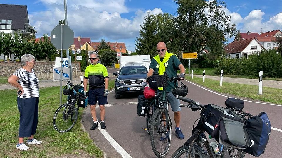 Bei Rogätz haben die drei Radfahrer die kleine Fähre genommen, um die Elbe zu überqueren.